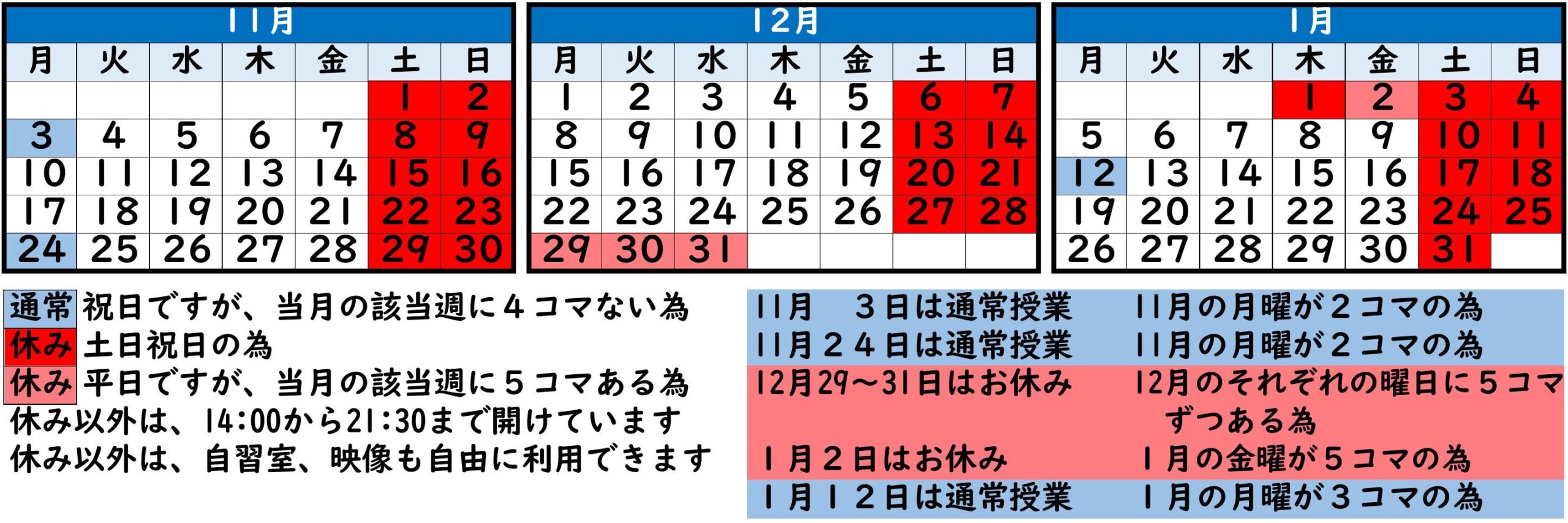 11/3(祝)は通常授業