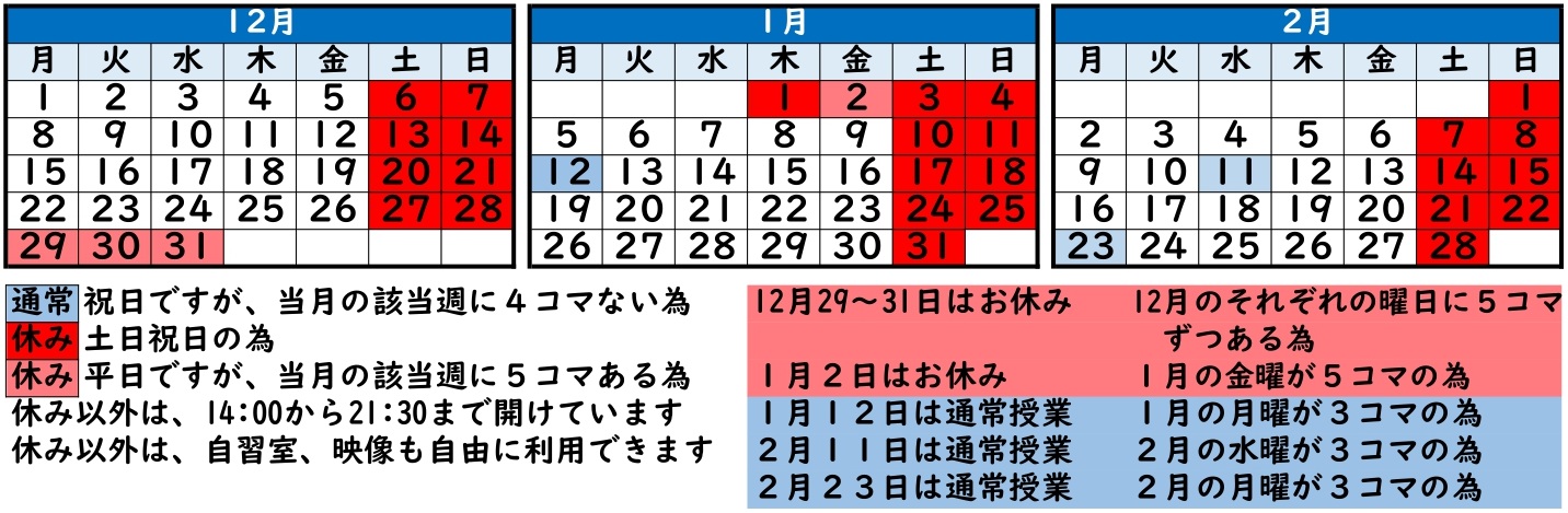 月曜の祝日はほぼ通常授業です。曜日変更ご希望の方はご連絡ください。